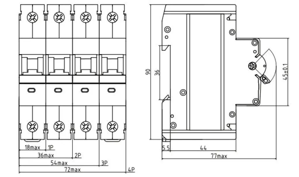 | Rated current | 16A, 20A, 25A, 32A, 40A, 50A, 63A, 80A |