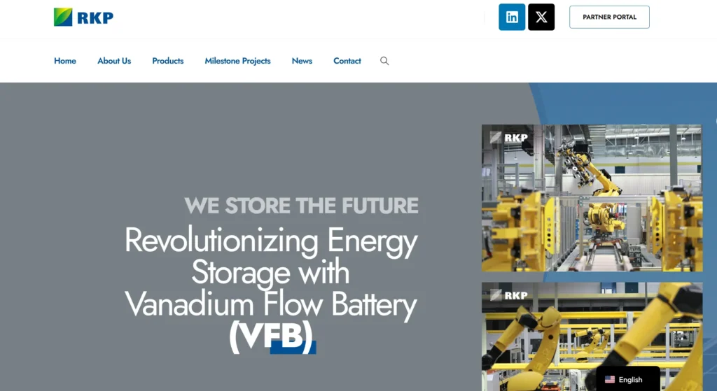 - Core products: Utility-scale VRFB systems, battery stacks, PCS and EPC services.