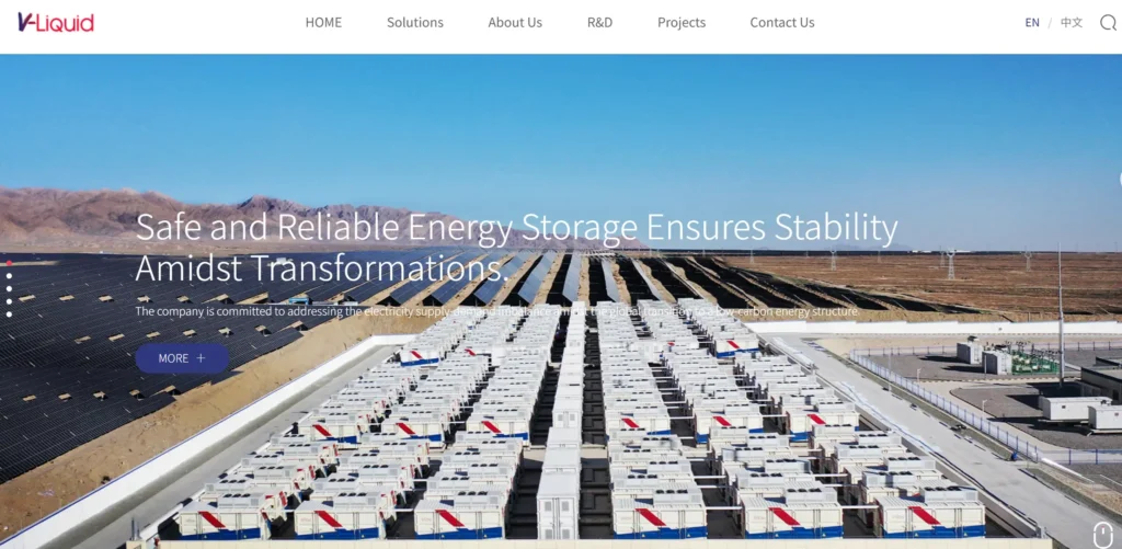 V-Liquid Energy (often styled as V-LIQUID) is a rapidly growing VRFB manufacturer with multiple production bases in China and an explicit strategy to scale to GW-level stack production. The company focuses exclusively on all-vanadium liquid flow chemistry, stack manufacturing and system integration, and has publicized several large project deployments and trial operations in 2024–2025. V-Liquid emphasizes manufacturability — welding and sealing innovations, compact stack layouts and modular tanks — to reduce cost per kWh while retaining VRFB advantages for long-duration storage and safety. The firm is increasingly visible in regional utility projects and industrial park deployments.